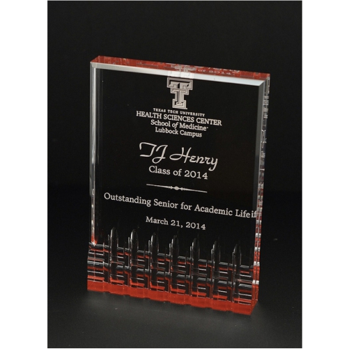Mirage Acrylics are 1" thick and self standing. This acrylic is great for all needs. Your custom logo can be added at no extra charge.